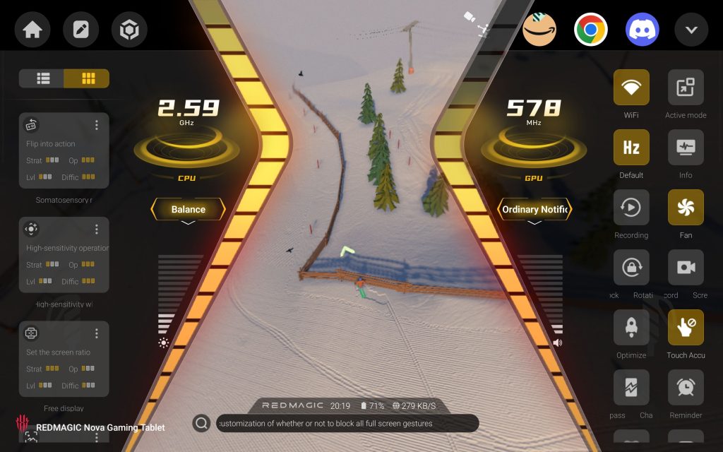 With this being a gaming tablet, you do, of course, have the de facto customisation apps, this time called Game Space. In a slight difference to the phones from RedMagic, there is no dedicated switch, and you can access this from the Quick Settings menu but not the app drawer, which is a bit strange, I thought. You can’t even get it up from the settings menu. However, once opened, you can tweak your settings to your heart’s content.
