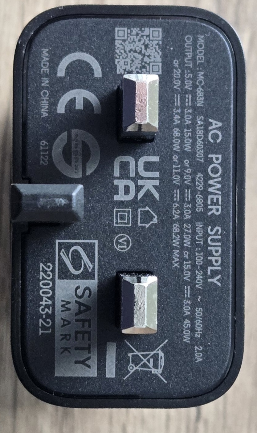 In the box you get. the phone itself, obviously,  USB wired headphones. A USB type C to USB type C charging cable. The usual documentations and sim injection tool, A 68 watt charging brick and a slim line hard plastic protective case, although not really needed when the rear of this phone is made out of aramid fibre. But unlike other manufacturers of the day. It’s nice to see all these accessories included in the box.